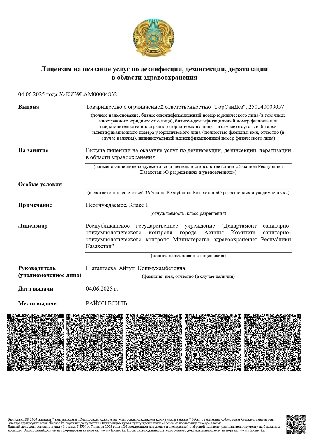 Уважаемые клиенты, согласно приказу Министра здравоохранения Республики Казахстан от 29 июля 2022 года № ҚР ДСМ-68 "Об утверждении Санитарных правил "Санитарно-эпидемиологические требования к организации и проведению дезинфекции, дезинсекции и дератизации" с 01.01.25 года нельзя работать без лицензии нового образца! Будьте внимательны!