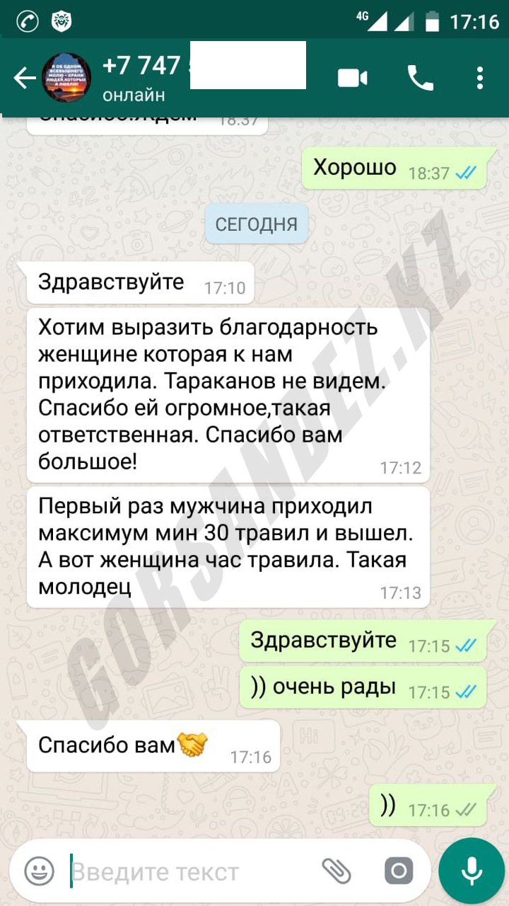 Прием заявок на обработку по городу Астана проводится 8.00 до 20.00, без выходных, по телефону: +7 (776) 905-00-70.